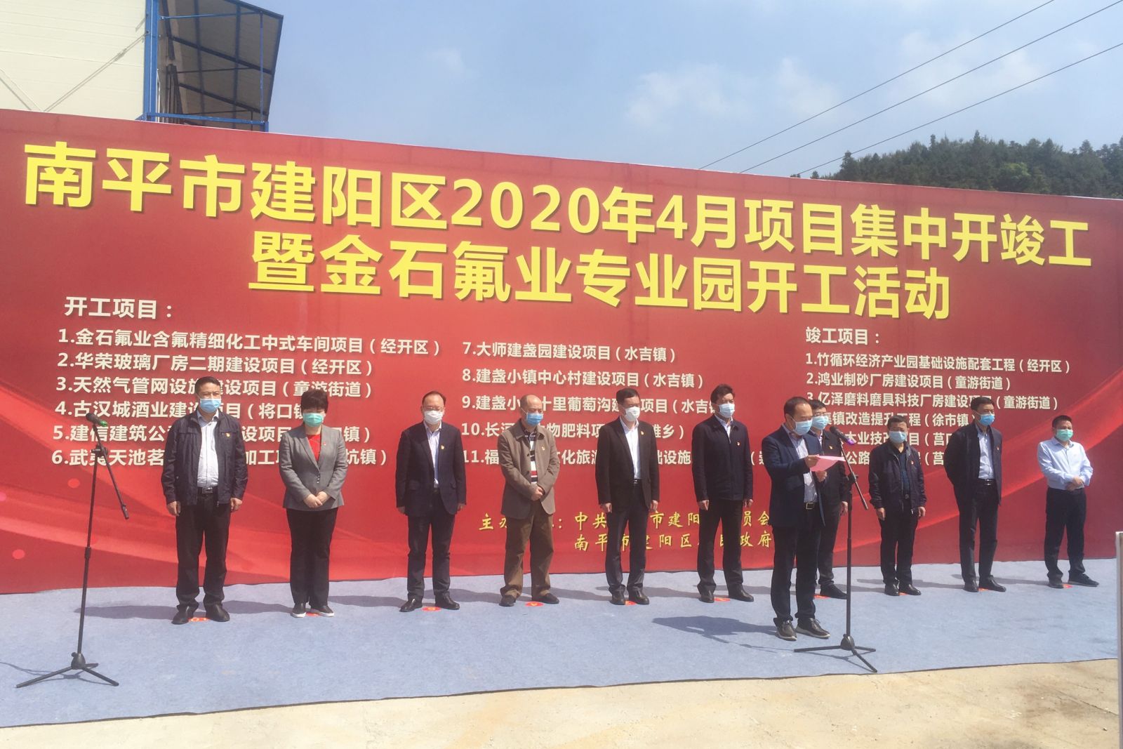 4月24日,我區(qū)舉行4月份重大項目集中開竣工儀式。南平市副市長何明星,建陽區(qū)委書記楊新強、區(qū)長魏敦盛等區(qū)黨政班子領(lǐng)導(dǎo),區(qū)直有關(guān)單位、項目業(yè)主單位主要負(fù)責(zé)人和監(jiān)理單位、施工單位代表參加活動。儀式現(xiàn)場,何明星宣布項目開工,楊新強致辭,魏敦盛主持,公司董事長陳建華代表項目業(yè)主發(fā)言。